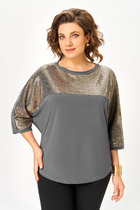 Стильная блуза рубашечного кроя с центральной застежкой на пришивные пуговицы, скрытые планкой из основной ткани.  Рукав втачной.  По плечу декоративная сборка на шнурок, выполненный из основной ткани. Воротник отложной на стойке. Длина блузы от плечевого шва 73см.  Длина рукава 25см.