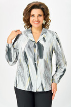 Стильная рубашка свободного кроя с центральной планкой на застежку пуговицы по полочке из ткани содержащей хлопок, со спущенной линией плеча. Изделие с горловиной стойкой. По переду рубашки накладные карманы. Рукав втачной двух шовный, в 12см от низа рукава кулисrа со втянутым в нее шнуром для затягивания. Спинка изделия с кокеткой и заложенной складкой. Низ рубашки фигурный с разрезами по боковым швам.