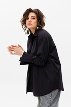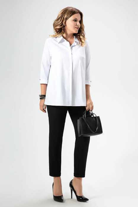 Лаконичная и строгая блузка из хлопковой ткани – отличный вариант для офиса. Блузка полуприлегающего силуэта слегка расширенная к низу, по бокам имеются небольшие разрезы. Блузка с центральной сквозной застежкой на потайные петли и пуговицы и одну декоративную пуговицу на стойке воротника. По переду имеются нагрудные выточки, по спинке имеется кокетка, от кокетки - небольшая сборка, что обеспечивает особый комфорт. Рукава длиной чуть ниже локтя, с отложными манжетами. На манжетах имеются декоративные петли и пуговицы. Такая блузка отлично сочетается с различными брюками, джинсами, сарафанами, создавая стильный современный образ.
