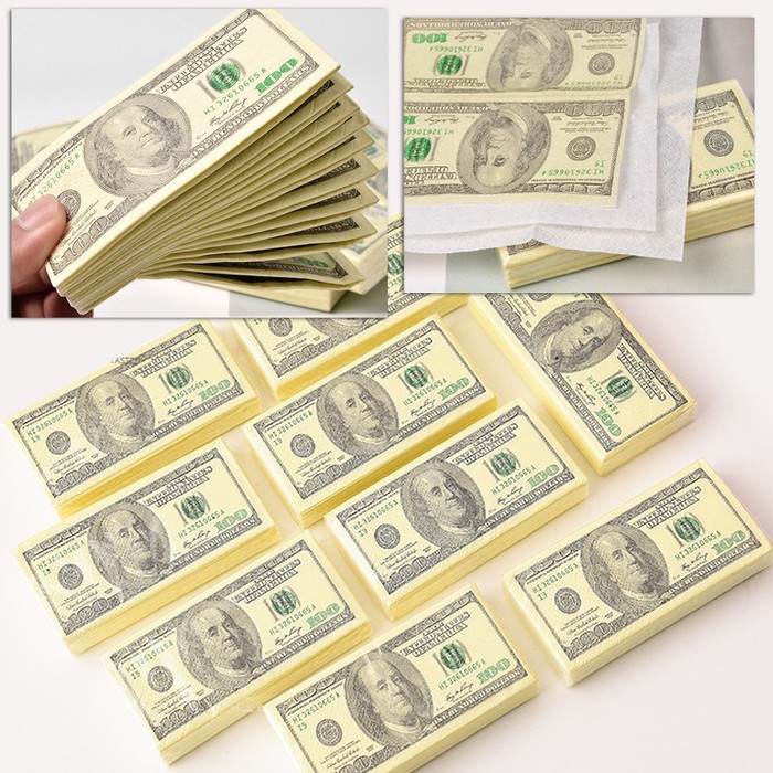 Совместные покупки Каменск-Уральский Косметика и парфюмерия Прочий макияж — Салфетки сервировочные "ПАЧКА ДОЛЛАРОВ" 3 слоя, 10 штук, 33х33 см.
