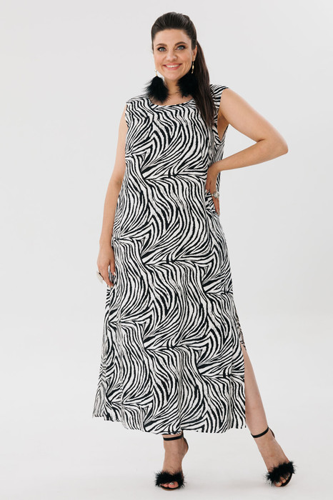 Не упустите возможности чувствовать себя роскошно в этом сарафане из натуральной ткани и авангардным принтом от Анелли.