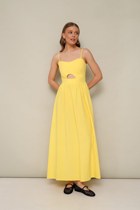 Платье отрезное по линии талии, на бретельках с регуляторами, выполнено из натурального льна. Лиф прилегающего силуэта, с фигурным вырезом в области линии талии. Застежка на потайную молнию в боковом шве. Спинка частично обработана венгеркой, для комфортной регуляции размера. Юбка А-образного силуэта, с внутренними карманами в боковых швах.