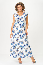 Сарафан молодежный из трикотажного полотна «кулирка» с набивным рисунком в полоску, полуприталенного силуэта на тонких бретелях, с карманами в боковых швах. Вырез горловины полочки и спинки обработаны притачной планкой из основного материала, проймы окантованы.