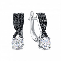 Серьга-каффа из серебра с фианитами родированная 28019р