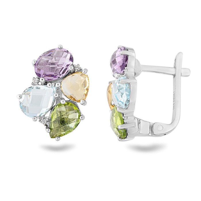 Серьги, арт.654594 Серебро Серебро 925, 6,1 гр., аметист , перидот , топаз , цитрин