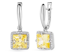 Серьги из серебра с янтарём и фианитами родированные 04-802-0445-12