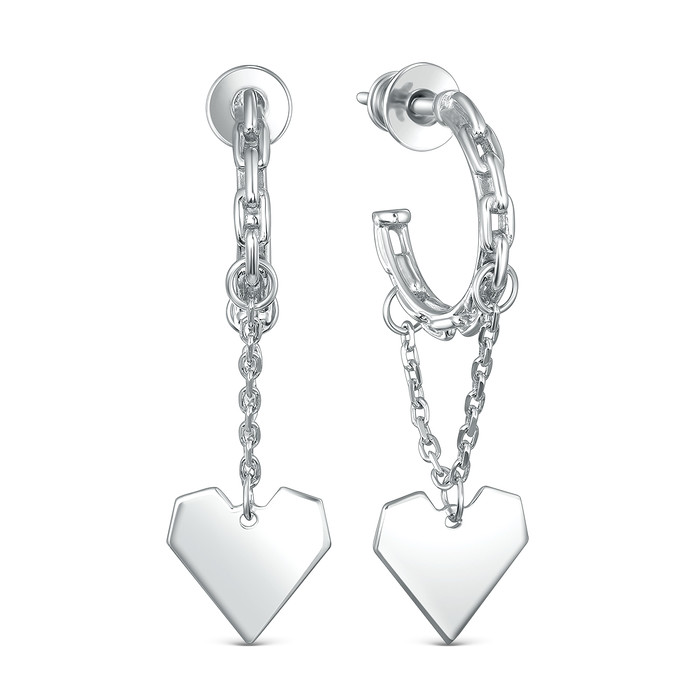 Совместные покупки Каменск-Уральский Ювелирные украшения и бижутерия Серьги — Серьги цепи из серебра родированные - Сердца 925 пробы 220-10-023р
