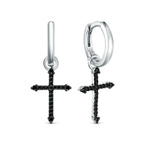Серьги кресты из серебра с фианитами родированные 925 пробы С-7300р216