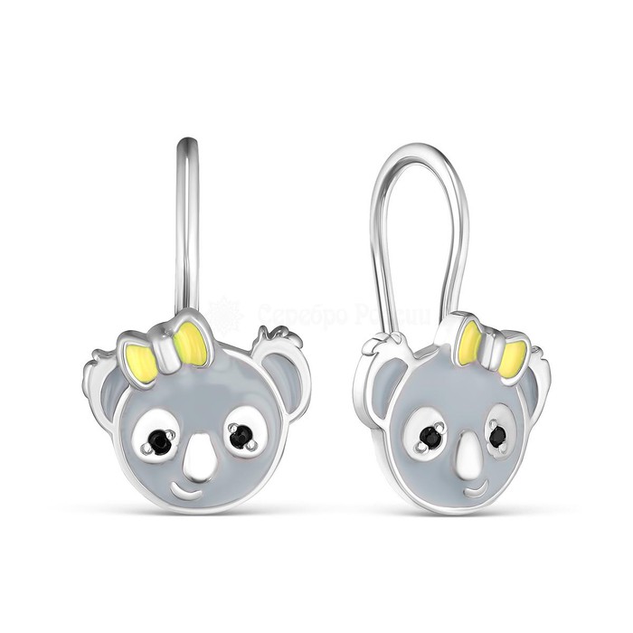 Серьги детские из серебра с эмалью и фианитами родированные - Коалы