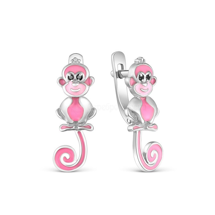 Серьги детские из серебра с эмалью и фианитами родированные - Обезьянки