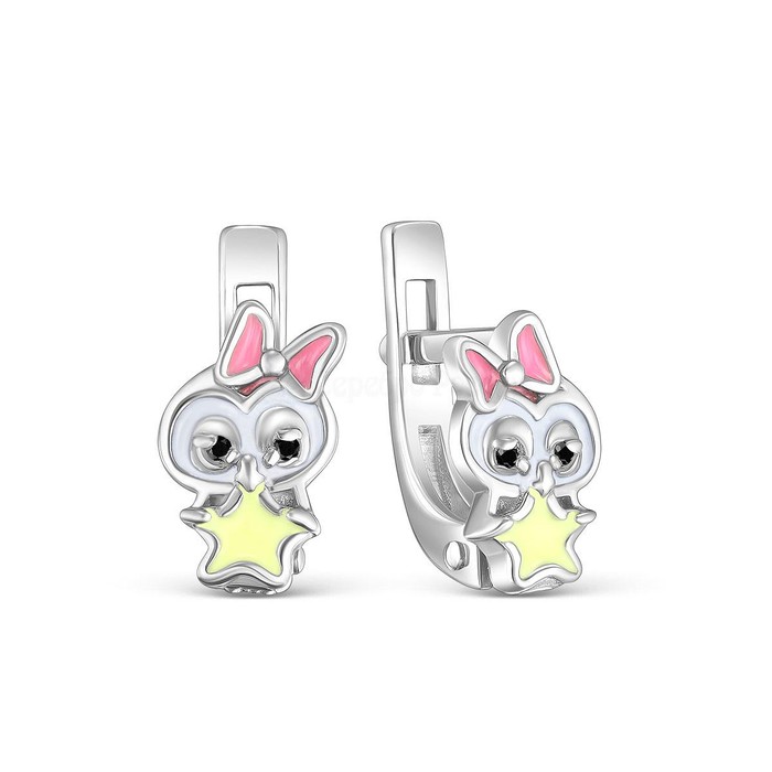 Совместные покупки Каменск-Уральский Детские аксессуары Украшения, бижутерия — Серьги детские из серебра с эмалью и фианитами родированные - Совушки