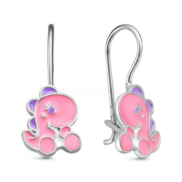 Совместные покупки Каменск-Уральский Детские аксессуары Украшения, бижутерия — Серьги детские из серебра с эмалью родированные - Динозаврики 925 пробы 5063эр2