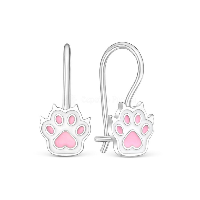 Совместные покупки Каменск-Уральский Детские аксессуары Украшения, бижутерия — Серьги детские из серебра с эмалью родированные - Лапки 925 пробы 5066эр1