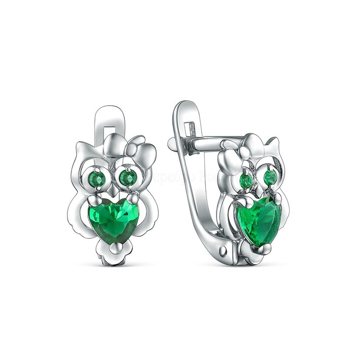 Совместные покупки Каменск-Уральский Детские аксессуары Украшения, бижутерия — Серьги детские из серебра с фианитами цвета изумруд в форме сердца родированные