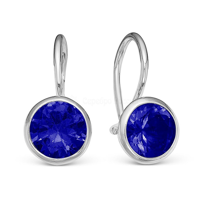 Серьги детские из серебра с фианитами родированные 925 пробы дс-001 синий