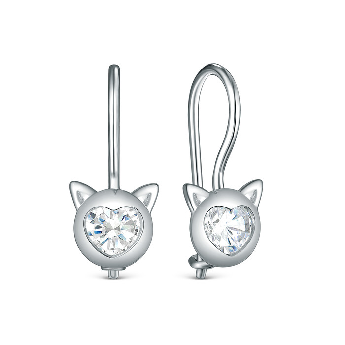 Совместные покупки Каменск-Уральский Ювелирные украшения и бижутерия Серьги — Серьги детские из серебра с фианитами родированные - Кошки S2180581010