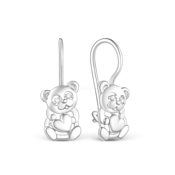 Совместные покупки Каменск-Уральский Детские аксессуары Украшения, бижутерия — Серьги детские из серебра с фианитами родированные - Медвежата с сердцем 925 про