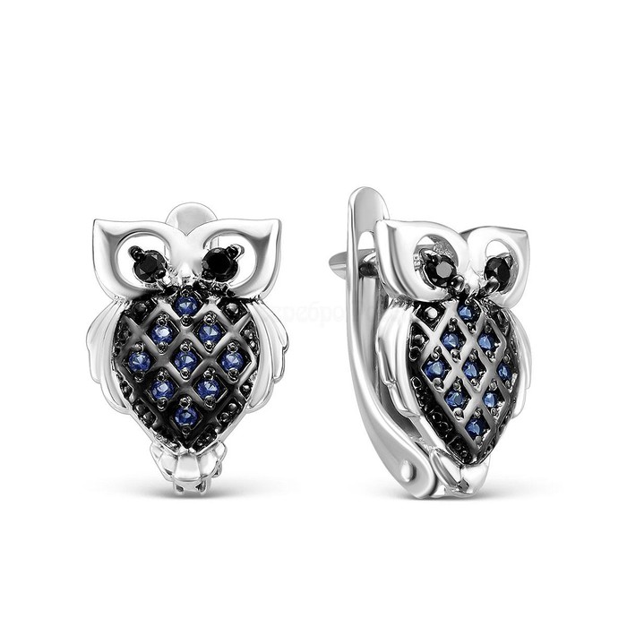 Серьги детские из серебра с фианитами родированные - Совушки