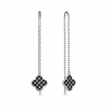 Серьги длинные форма клевер из серебра родированные коллекция quatrefoil
