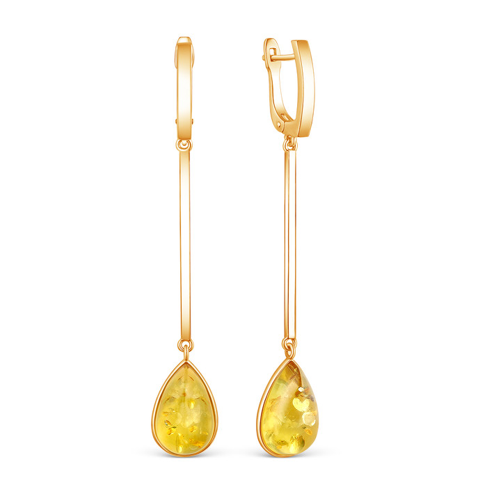 Серьги длинные из золочёного серебра с натуральным янтарём 925 пробы 2200411204