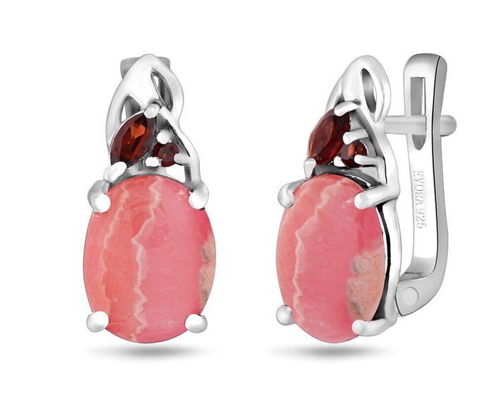 Серьги, арт.656245 Серебро Серебро 925, 3,37 гр., гранат , родохрозит