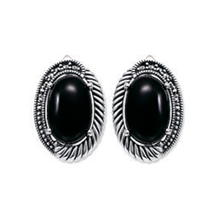 Серьги из чернёного серебра с ониксом и марказитами 925 пробы HE1750-ON-LK
