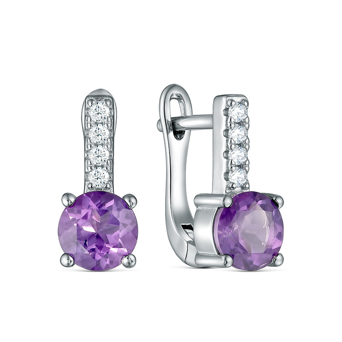 Совместные покупки Каменск-Уральский Ювелирные украшения и бижутерия Серьги — Серьги из серебра с аметистом и кубическим цирконием родированные 925 пробы GTE-