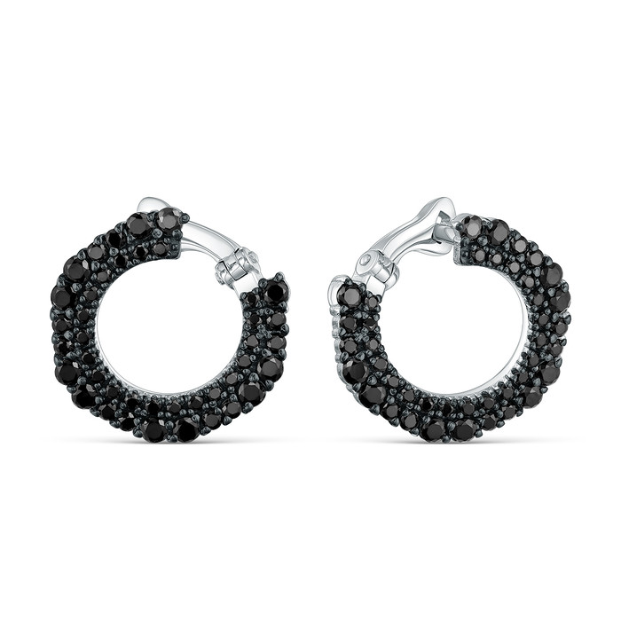 Серьги из серебра с чёрной шпинелью родированные 2-359рч416