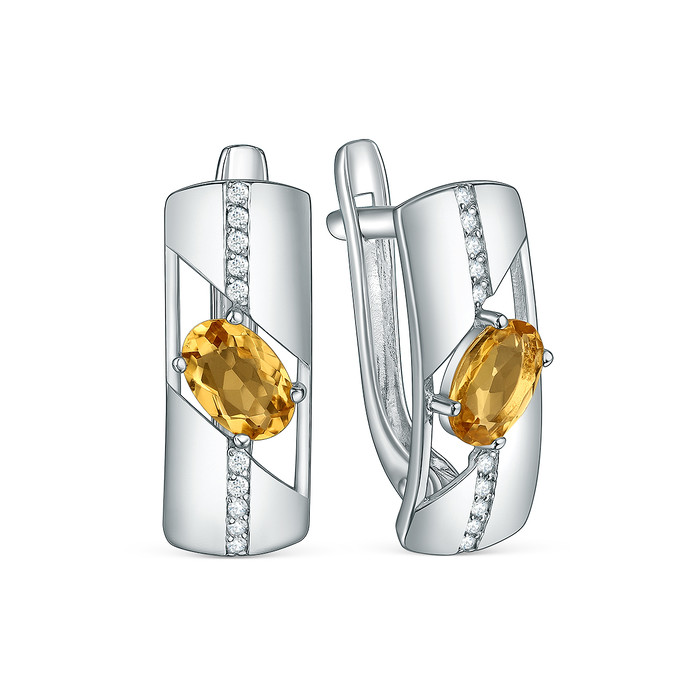 Совместные покупки Каменск-Уральский Ювелирные украшения и бижутерия Серьги — Серьги из серебра с цитрином и фианитами родированные 2-3906-001