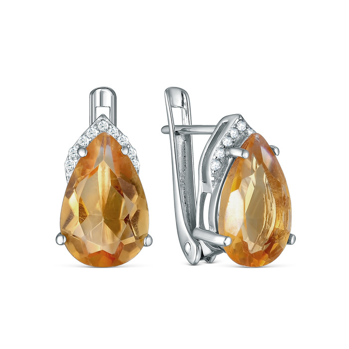 Совместные покупки Каменск-Уральский Ювелирные украшения и бижутерия Серьги — Серьги из серебра с цитрином и кубическим цирконием родированные 925 пробы GTE-2