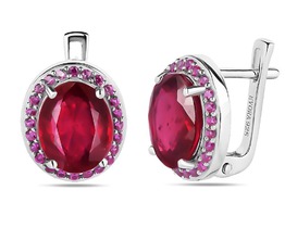 Серьги, 2 рубин корунд овал 8х10 мм/6.99 ct. , нанорубин, Валинта