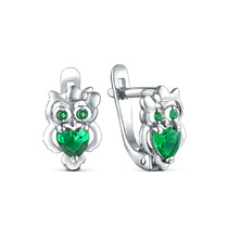 Серьги из серебра с изумрудного цвета шпинелью и фианитами родированные 925 проб