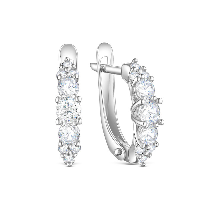 — Серьги из серебра с фианитами родированные 925 пробы 11-0207