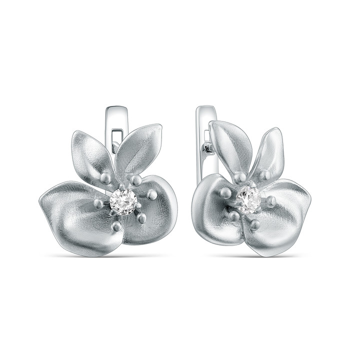 Серьги из серебра с фианитами родированные 925 пробы 2-493р200
