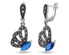 Серьги, марказит , синт.сапфир, SL-AGA558