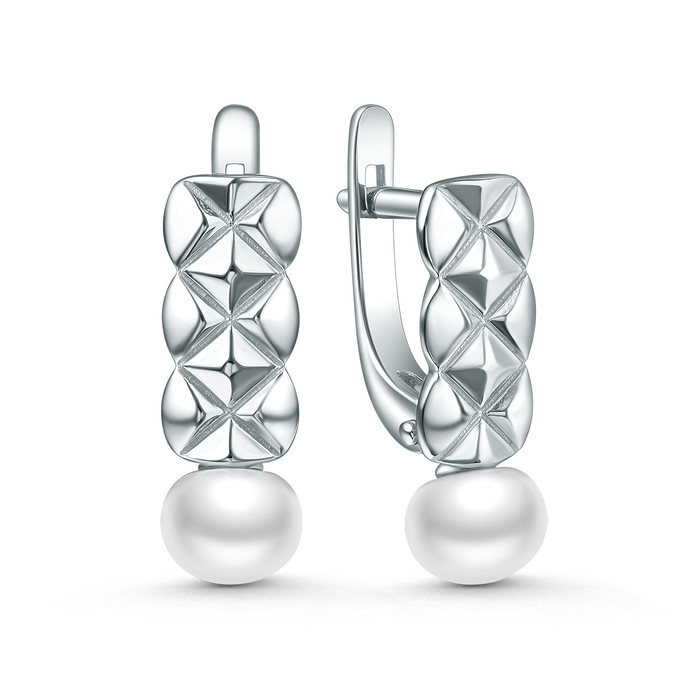 Серьги из серебра с культивированным жемчугом родированные 311093