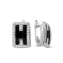Серьги из серебра с чёрной керамикой и куб. цирконием родированные 925 пробы CTX