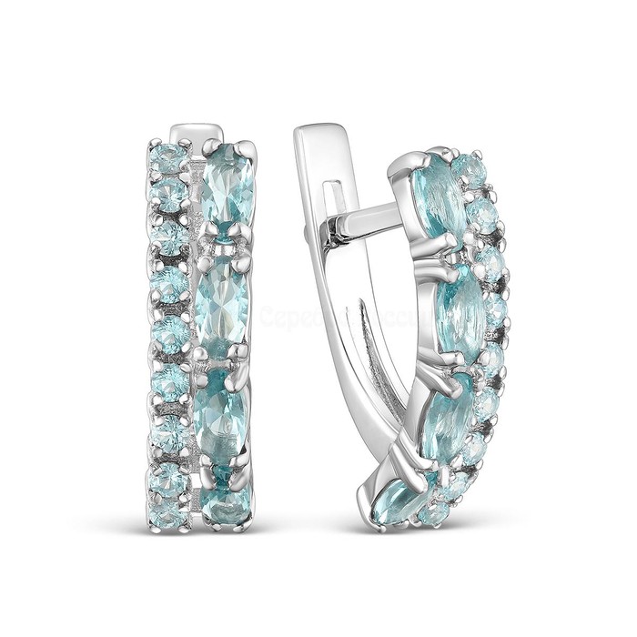 Серьги из серебра с плавленым кварцем цвета аквамарин 2-391р125