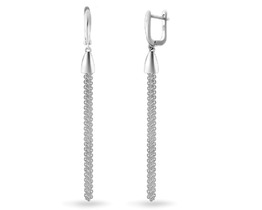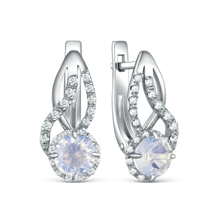 Серьги из серебра с плавленым кварцем и фианитами родированные 925 пробы 2-535р1