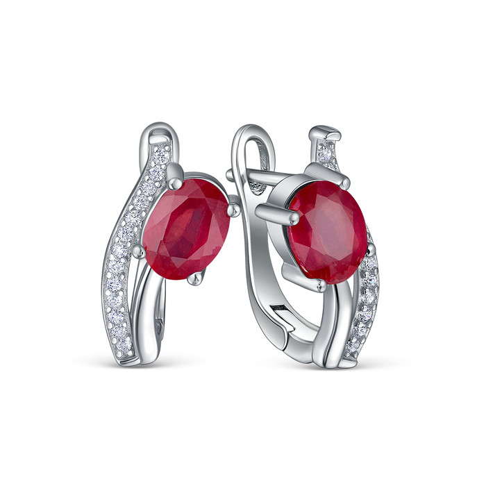 Серьги из серебра с рубином и кубическим цирконием родированные 925 пробы GTE-73