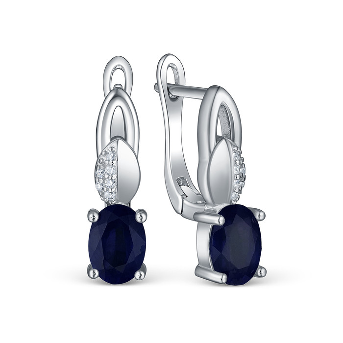 Совместные покупки Каменск-Уральский Ювелирные украшения и бижутерия Серьги — Серьги из серебра с сапфиром и кубическим цирконием родированные 925 пробы GTE-0
