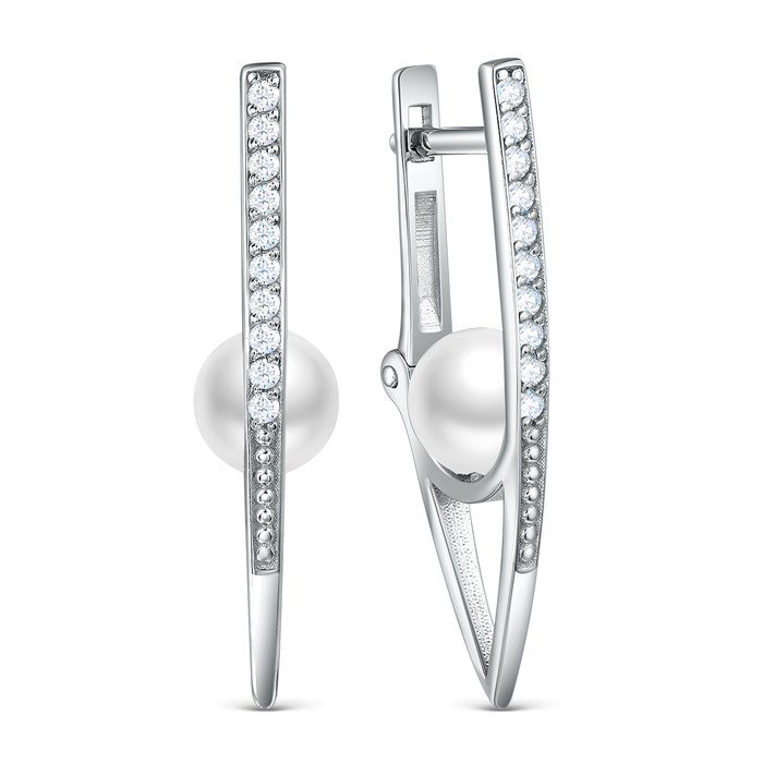 Серьги из серебра с жемчугом сваровски и фианитами родированные 925 пробы 2-6034
