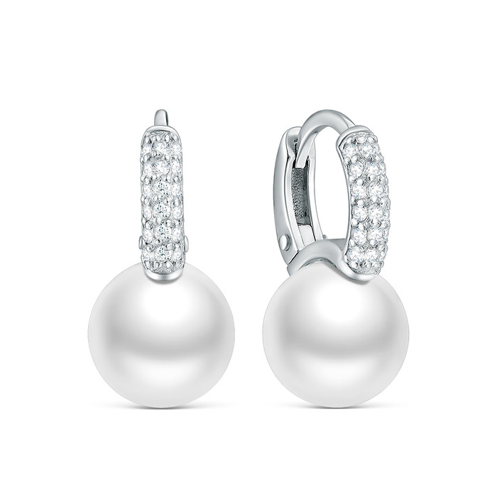 Серьги из серебра с жемчугом Swarovski и фианитами родированные 925 пробы 2-582р