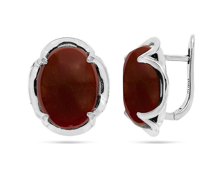Серьги, арт.651671 Серебро Серебро 925, 6,63 гр., сердолик