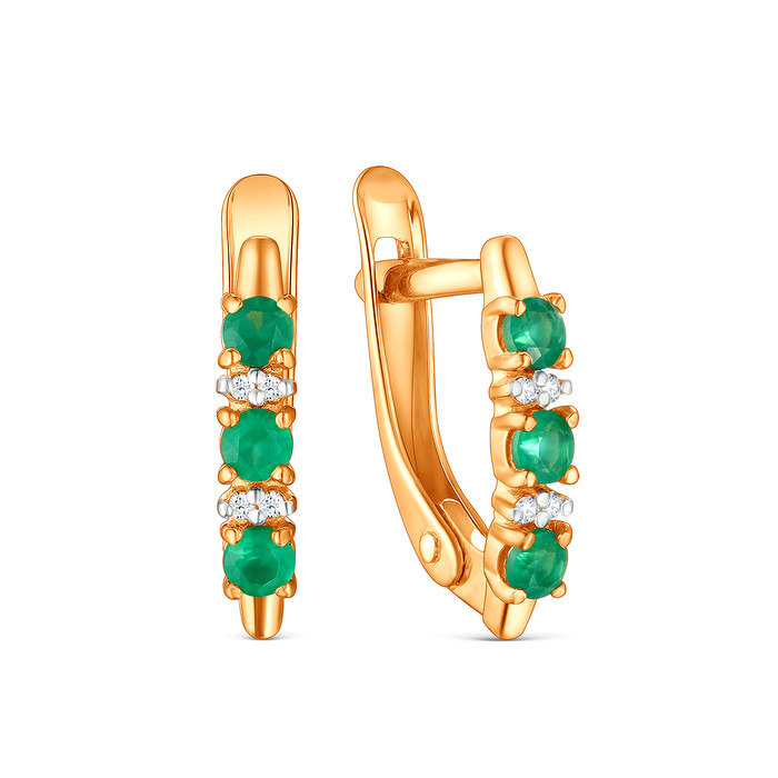 Серьги из золочёного серебра с бриллиантами и натуральным агатом 925 пробы С-219