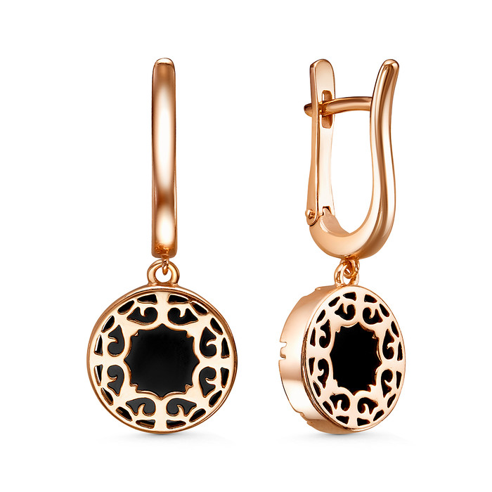 Совместные покупки Каменск-Уральский Ювелирные украшения и бижутерия Серьги — Серьги из золочёного серебра с чёрным агатом 925 пробы 05-202-0412-25