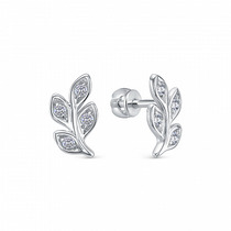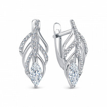 Серьги с фианитом родированные серебро 925*