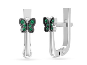 Серьги с фианитом родированные серебро 925*