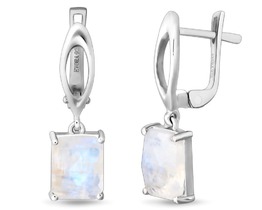 Серьги из серебра с плавленым кварцем цвета лунный мятный родированные 925 пробы