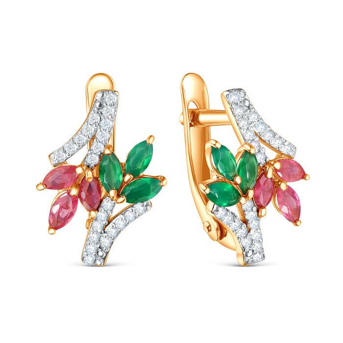Серьги из золочёного серебра с рубином, агатом, фианитами и родированием 925 про